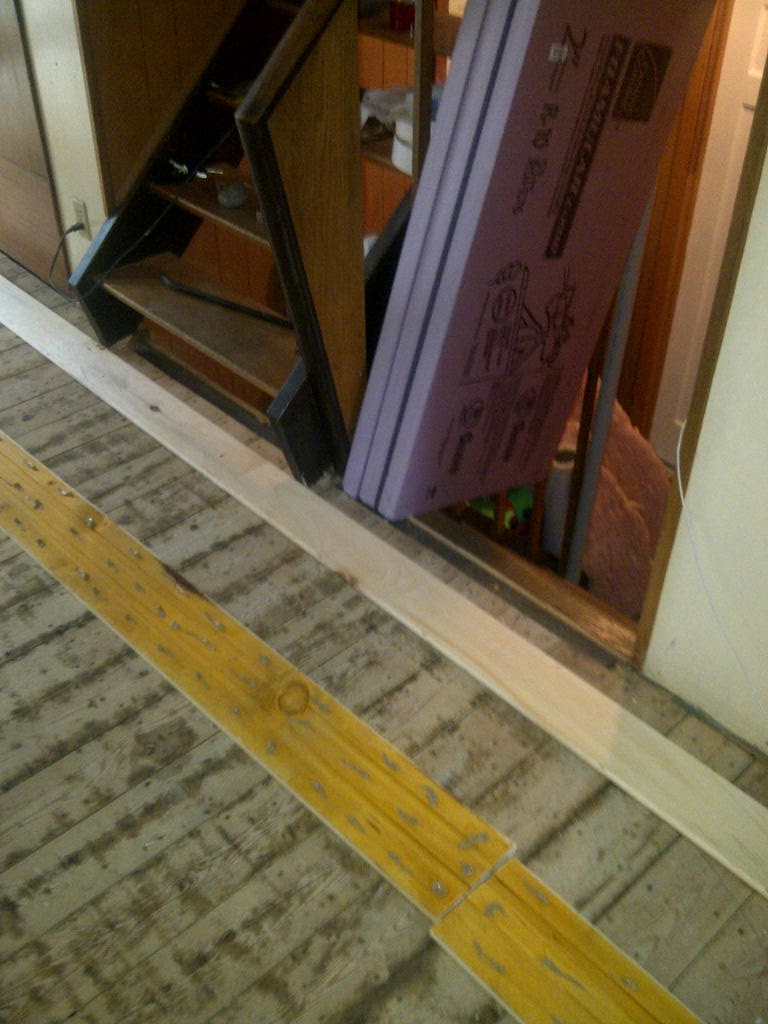 Once the floor is removed, you have to look for uneven patches. Often buildings are added on to, porches become part of the room, walls between additions get removed and you may have to use a sander to even things up before you put the new flooring down.
